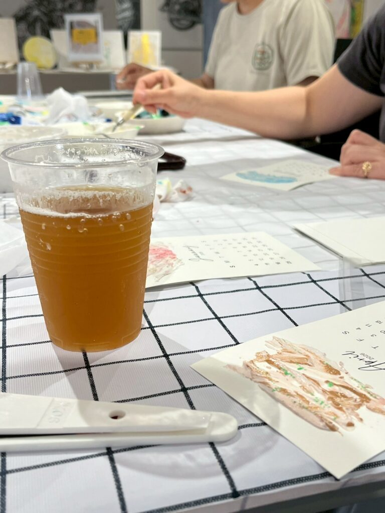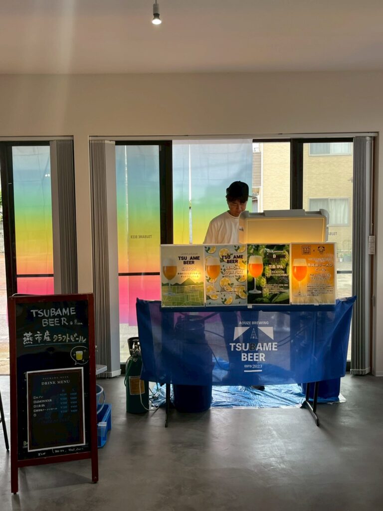 4日はツバメビールとのコラボもあり、生ビールを飲みながらアート制作をするという体験も!